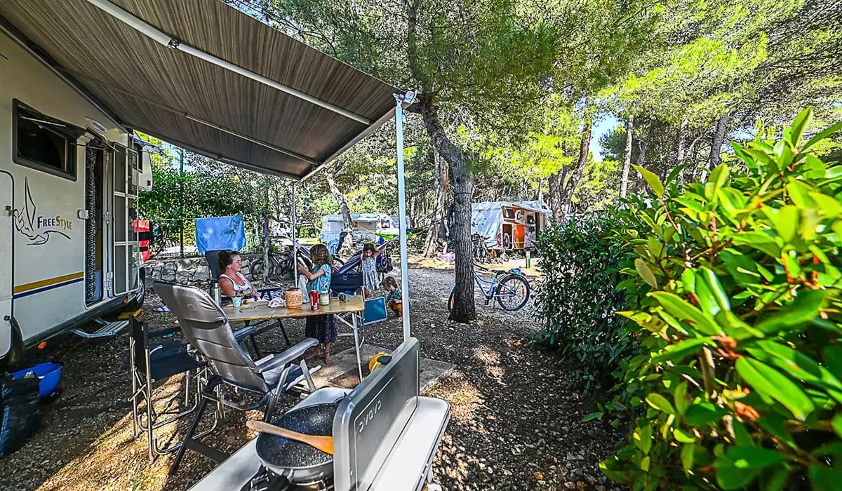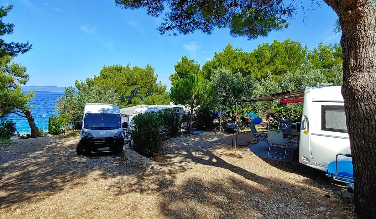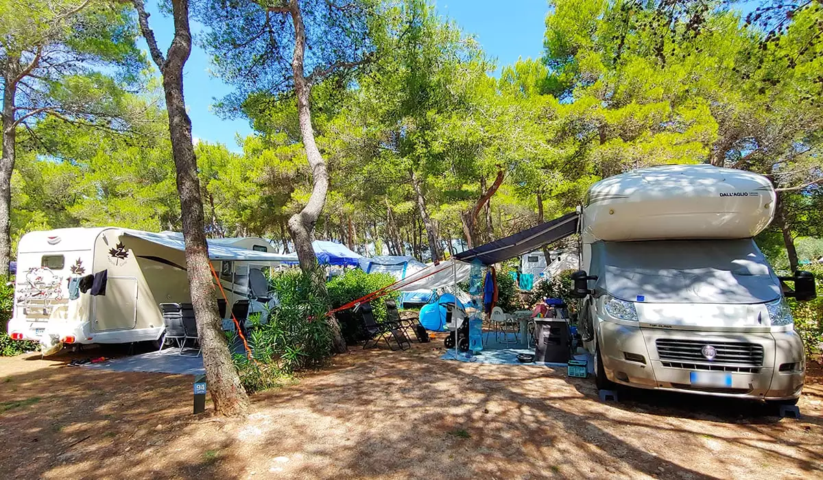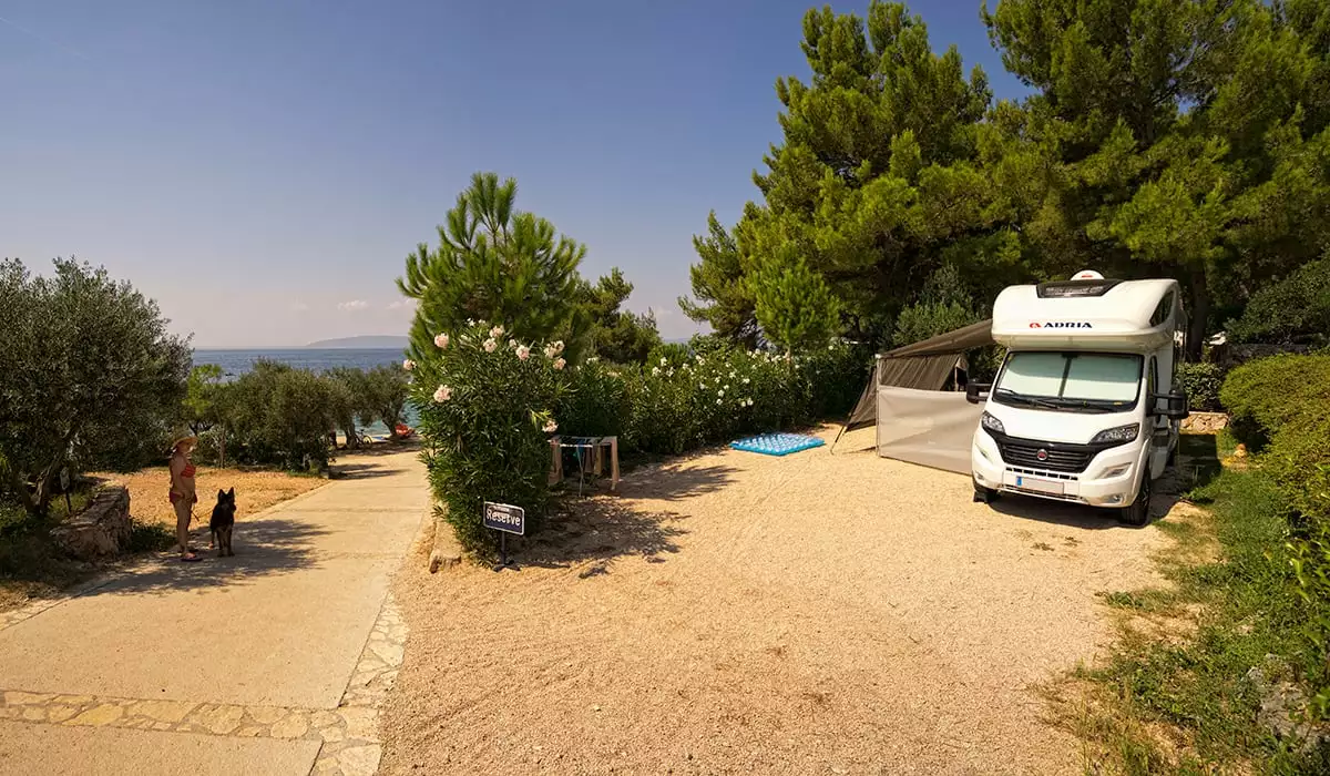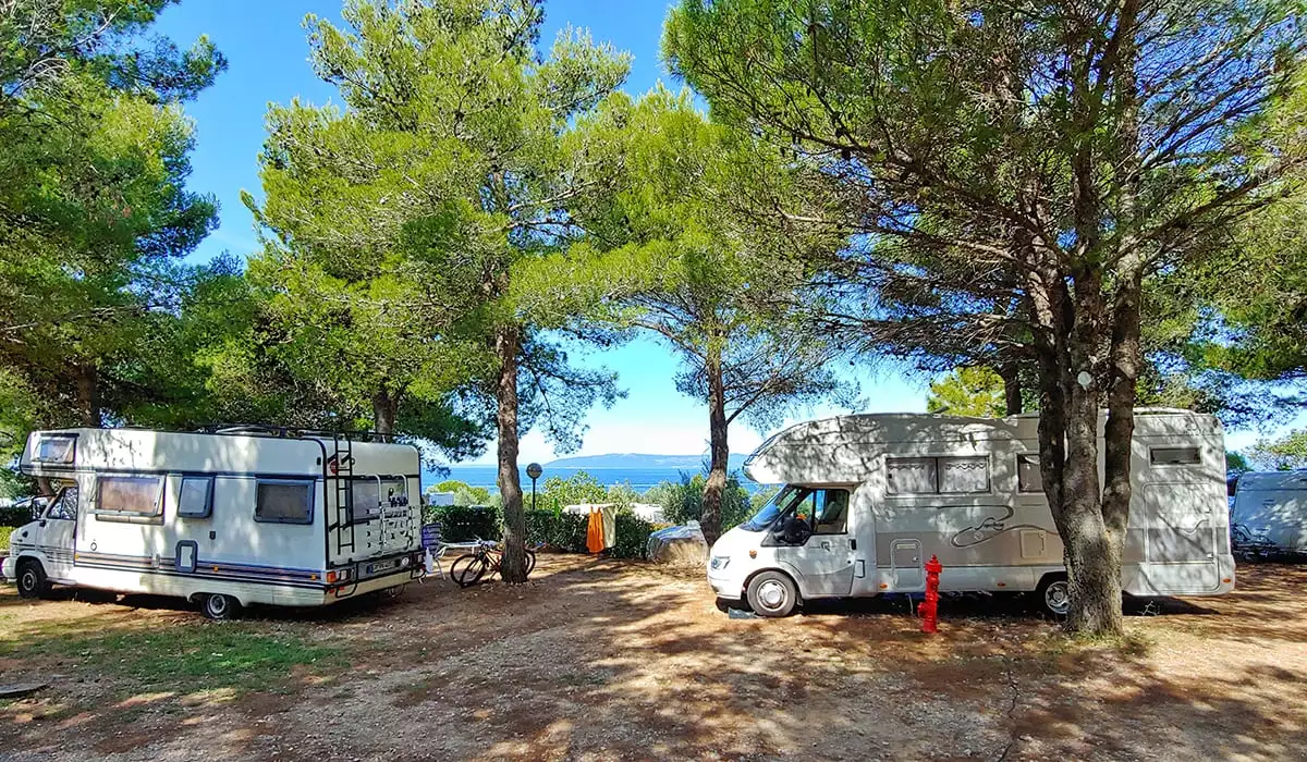 Uživajte u kampiranju na jednoj od terasasto raspoređenih parcela smještenih u prvom i drugom redu do mora ili u neposrednoj blizini mora i plaže u žutoj i zelenoj zoni. Veličina parcela varira između 60 i 120 m2, a sve parcele raspolažu zajedničkim ormarićem – na jedan ormarić idu priključak za struju i dvije slavine za vodu.